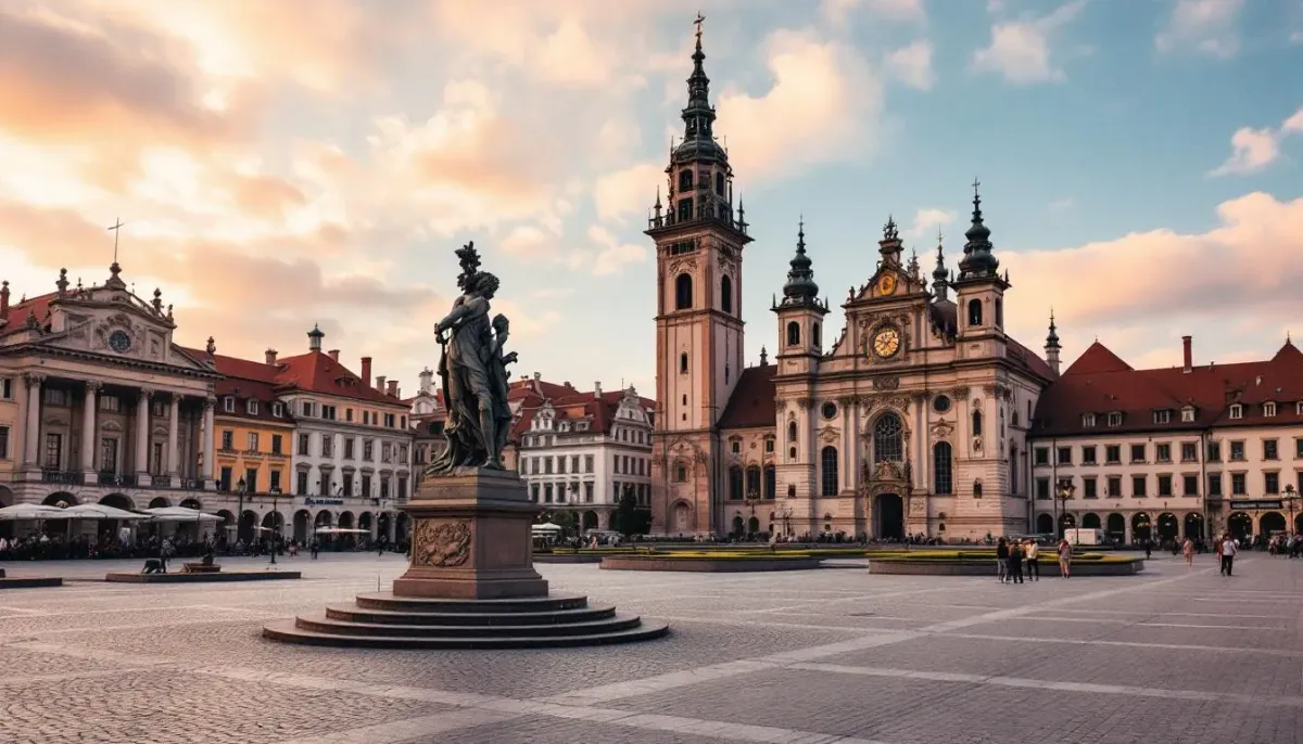 Sibiu's largest square, surrounded by Baroque palaces, the Brukenthal National Museum, and the City Hall. The famous rooftop 'eyes' watch over the square.